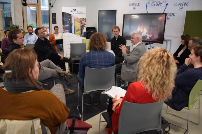 Kamingespräch zur Rolle von Wissenschaft in Gesellschaft in den Räumen von KU.impact
