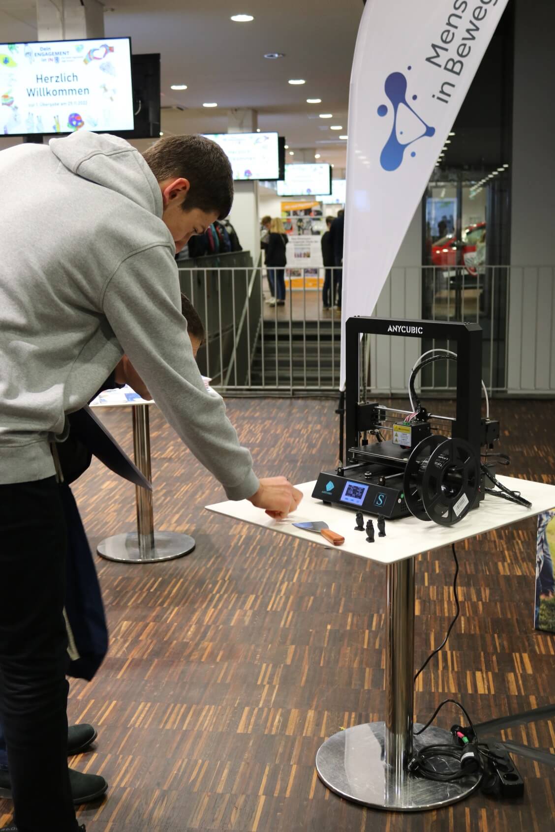 Die THI unterstützt bereits seit vielen Jahren ehrenamtliches Engagement, unter anderem über Studierendenprojekte oder studentische Vereine. Das Freiwilligenzentrum im Bürgerhaus der Stadt Ingolstadt, mit dem insbesondere über das Transferprojekt „Mensch in Bewegung“ immer wieder Kooperationen zwischen der Hochschule und der Stadt entstehen, fragte im Frühjahr eine Beteiligung der THI für dieses neue Format an. Ziel war es, den jungen Ehrenamtlichen einen unterhaltsamen Abend als Dank für ihr Engagement zu bereiten sowie die Nachwuchsförderung zu unterstützen. So bauten Mitarbeiterinnen aus „Mensch in Bewegung“ kleine Stationen mit Wissenschaft zum Anfassen auf: ein Pac-Man-Spielautomat weckte den Kampfgeist, ein 3D-Drucker druckte kleine Eulen, die mit nach Hause genommen werden durften und in der App „THInk green“ konnte getestet werden, wie nachhaltig man sich verhält. An einer Pinnwand konnte ein „SDG-Bingo“ gespielt werden, bei dem es darum ging, sich spielerisch mit den globalen Leitlinien für nachhaltige Entwicklung auseinanderzusetzen. Das THI-Angebot wurde rege angenommen.