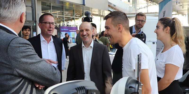 Am Tag der Mobilität präsentierte die THI Vertretern aus Politik und Wirtschaft, unter ihnen Staatssekretär Roland Weigert und Dr. Reinhard Brandl, MdB, sowie der interessierten Öffentlichkeit ihre Kernkompetenz in allen Facetten. „Wir wollen die Mobilität der Zukunft greifbar machen“, betonte THI-Präsident Professor Walter Schober. „Mit unserer Mobilitätsforschung wollen wir einen Innovationsbeitrag zur Stärkung unserer regionalen Mobilitätslandschaft leisten.“