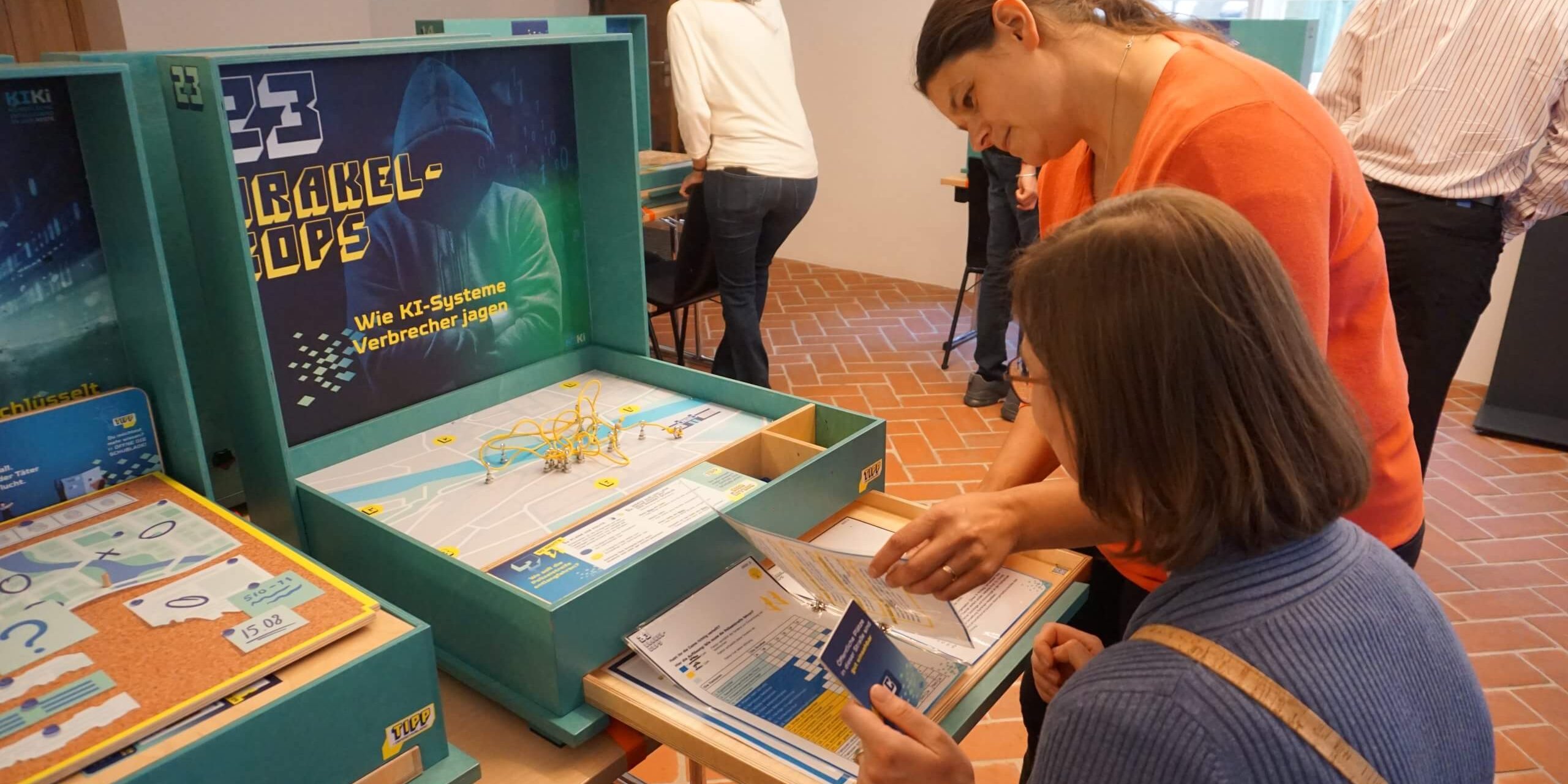 Im Anschluss an den Impulsvortrag konnten die Besucherinnen und Besucher „KI in der Kiste“ selbst entdecken und die verschiedenen Stationen ausprobieren.